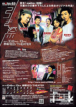 演劇は映画よりも貧乏だ。でも古い芸術だから全国に箱モノ(劇場)が立ち細かく助成金が出て、それで演劇界は成り立っている(metroはもらったことがない)。それはともかく、演劇の世界に潜ってみると、まだまだいい役者がいっぱいいるじゃないか。いいスタッフもいるし、何より演劇を愛してやまない観客がいる。特筆すべきは、演劇は考えたことを発表するまでの時間が短いということだ。
