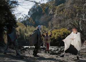 土田もうひとつ思ったことなんですけれど、魔王は自分で方位磁石を持ってる割には迷っちゃう。で、嘉子という女性ですね、魔王を倒すという意味では女神のような存在なのかもしれませんが、彼女は外と中の出入りをわりに自由にできます。その対比があって、あの河原の部分がこの映画でひとつのリズムを作っている。あそこがある種の三途の川というか、あの世とこの世の境界になっているというふうに観ました。つまり魔王にこの人達、支配されてるというか、まあ、食べられちゃってるんじゃないの? とか、死んじゃってるんじゃないの? っていう、そういう人達はあそこに行く。本当に人間として死んでるのはトイレで死んでるりりィさんだけで、その他の人達は、もともと死んでるけど出てきてるような気もするし、まあ、そこが分からないところが面白いというか。で、そういう人たちはあの河原に行けるんだなって。