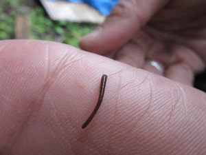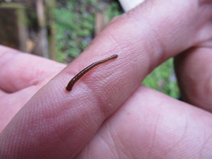 水の中に棲むヒルもいるが、陸にいるのはヤマビルだ。 ヤマビルは環形動物門ヒル綱顎ヒル目ヒルド科のヒルで、吸血動物であり、見た感じもとても気持ち悪い。 3センチぐらいで真ん中が少し膨らんで細長く、暗い土色をしていて、枯れ葉や土の上にいると目を凝らさないとちょっとわからない。これが息を吹きかけたりすると立ち上がる。両端に吸盤がついていて、その前の端を空中に持ち上げて身体をびよんと伸ばし(急に伸びる)、そのまま頭を垂れ下げてゆらゆらと揺らすのである。物凄く気持ち悪い。