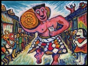 『島の大一番』は1995年制作のオムニバスドラマ『12 twelve ~ 天願大介の12幕~』の12本のうちの1本で、スズキコージ画伯の絵をCGで動かすというちょっと変わった手法のショートアニメです。