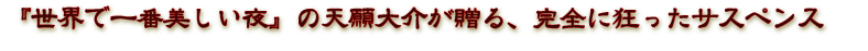 『世界で一番美しい夜』『デンデラ』の天願大介が20年ぶりに自主映画に戻った。 タガが外れた天願が好き勝手に描く、まったく新しい悪の形。理解しがたいけど面白い。わかりやすいけどわからない。気持ち悪いけど官能的。